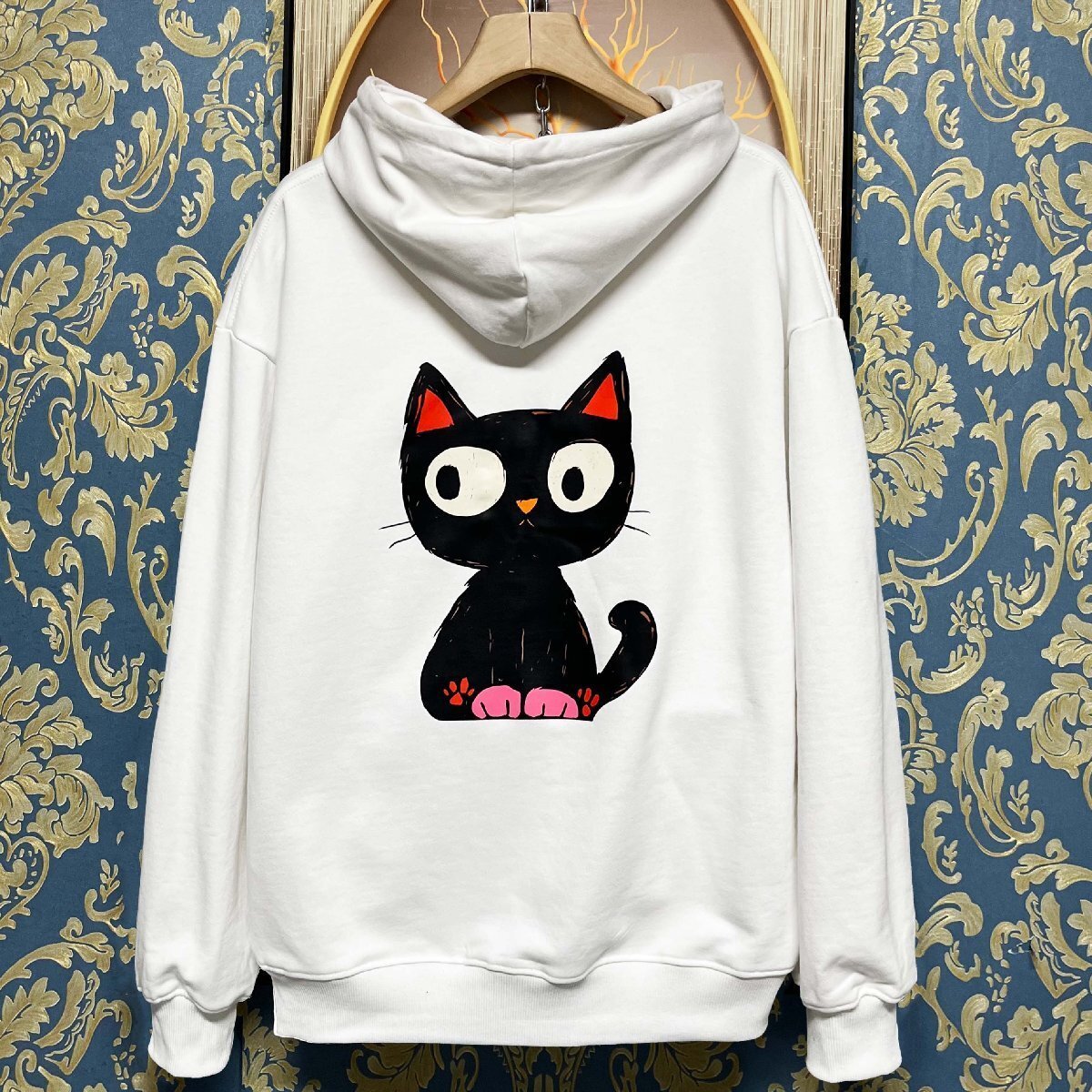 定価4万★christian milada・ミラノ発・パーカー★綿100% ソフト 通気 ネコ 可愛い シンプル トップス スウェット カジュアル 秋冬 XL/50 收藏
