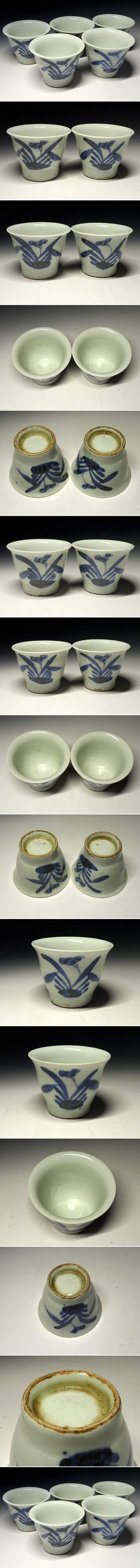 緑屋c■ 時代物 古伊万里 染付 蕎麦猪口 五客 古陶磁 i9/10-6269/5-3#60 收藏