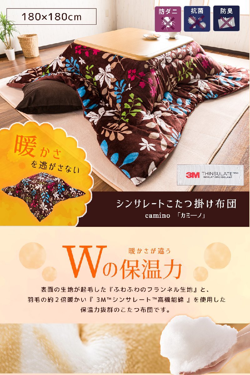 こたつ布団 掛け布団 シンサレート こたつ コタツ 180×180cm 正方形 防ダニ 抗菌 防臭 フランネル フリース 断熱 保温 あったか 收藏
