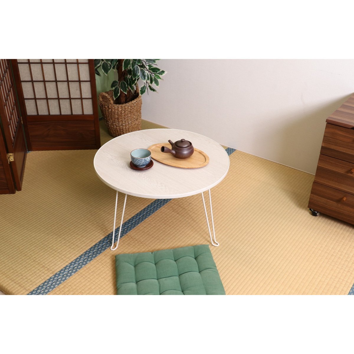 送料無料/ちゃぶ台 折りたたみ ローテーブル 丸 サークル デスク 家具 インテリア スチール 脚 幅60cm 高さ31cm ホワイトウォッシュ/新品 收藏