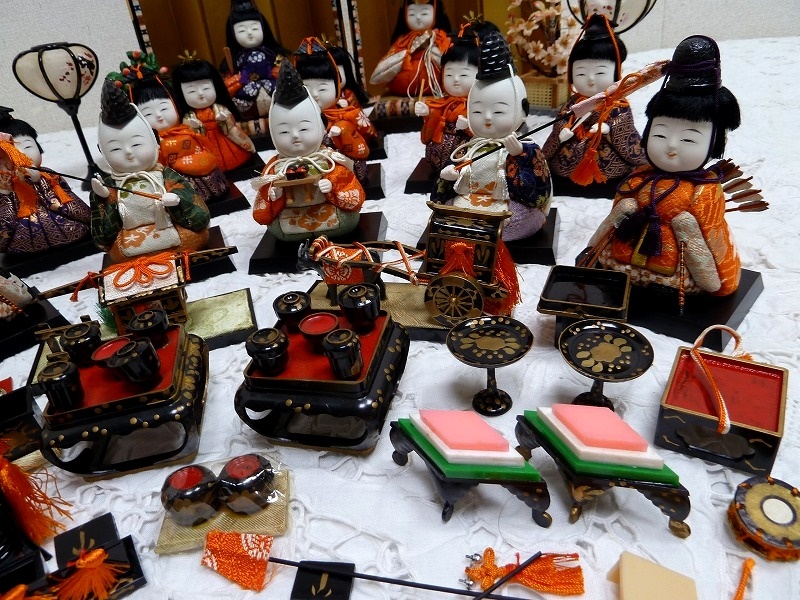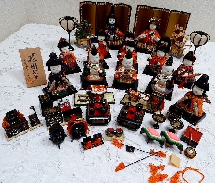 (☆BM)木目込み人形 花園びな/竜光 作 雛人形 節句 三人官女 五人囃子 随人 小ぶり 日本人形 ミニサイズ 收藏