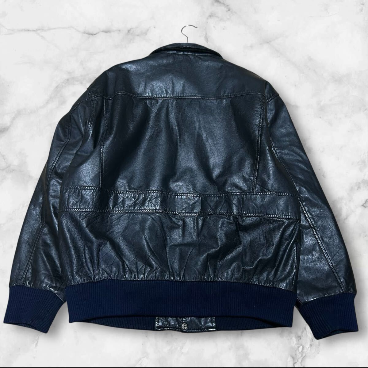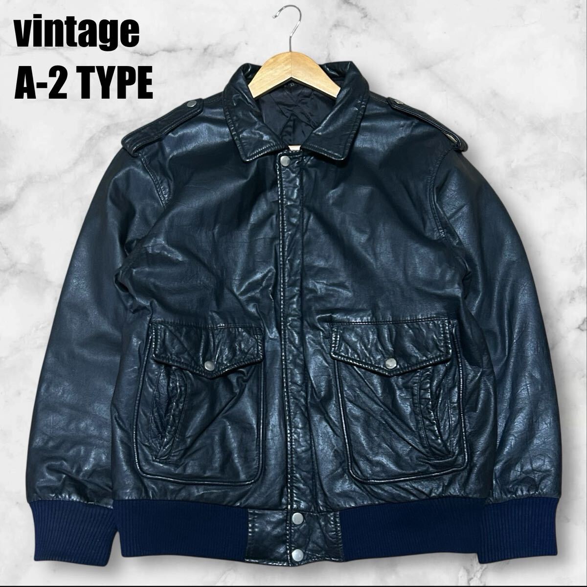 90s VINTAGE LEATHER 短丈 レザージャケット フライトジャケット A-2 A2 牛革 本革 黒 ブラック XL LL レザー メンズ XLサイズ 革 皮 收藏