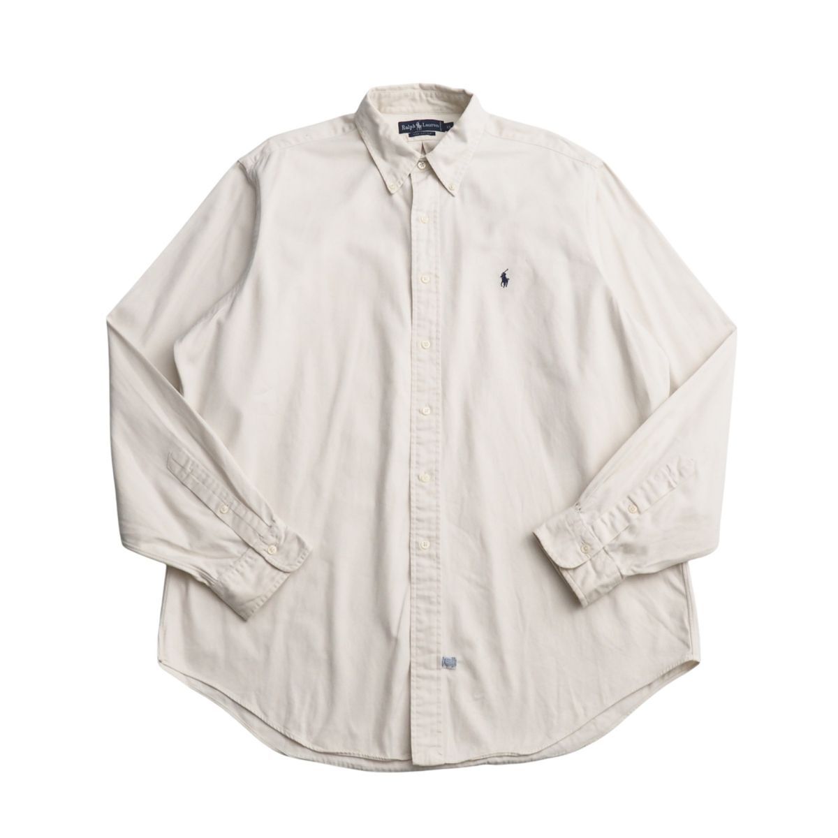 TJ5538+Ralph Lauren/ラルフローレン*メンズXL*ボタンダウンシャツ*長袖コットンシャツ*ポニー刺繍*アイボリー系 收藏