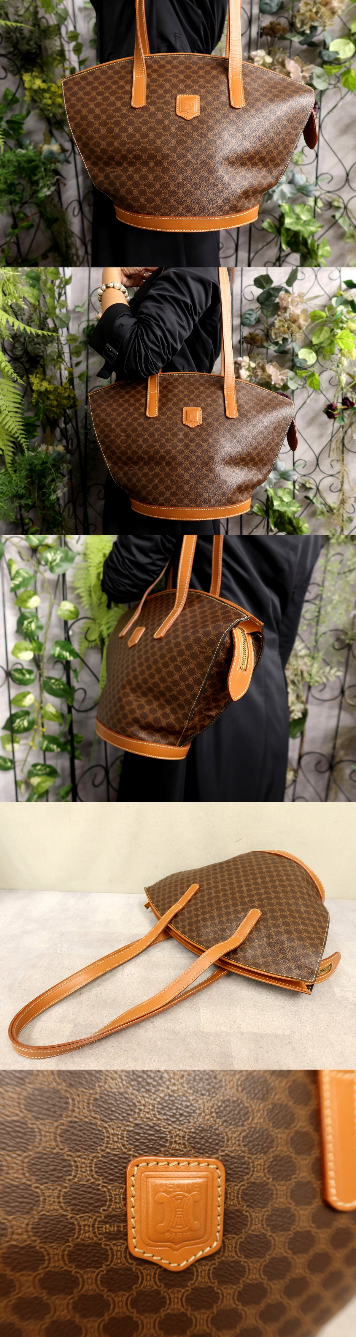 ●超美品●CELINE セリーヌ●マカダム●PVC カーフ レザー 本革●ショルダー バッグ●ブラウン キャメル●ゴールド金具●かばん●Js61671 收藏