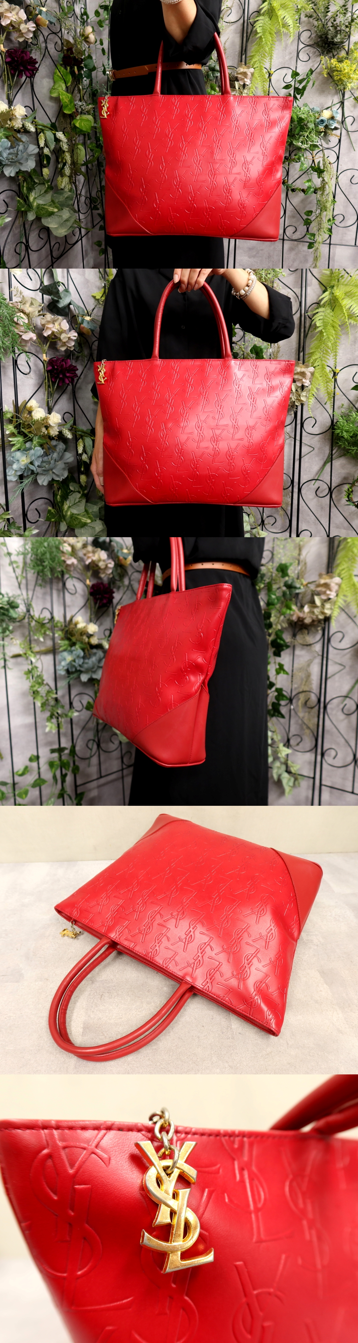 ●超美品●YSL イヴ・サンローラン●ロゴ型押し●カーフ レザー 本革●トート バッグ●赤●G金具●腕掛け●ヴィンテージ●A4 収納●Js60646 收藏