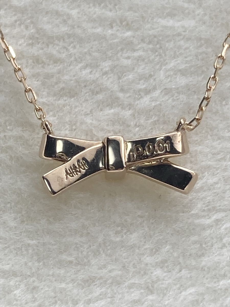 新品 正規品 AHKAH アーカー ネックレス リボン プチリュバン k18 750 箱紙袋 リボン ダイヤモンド プレゼント ギフト 收藏