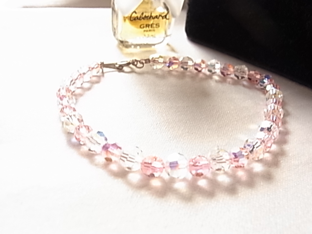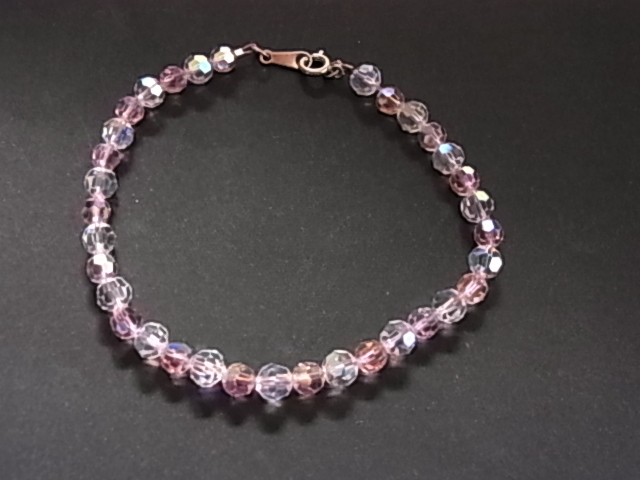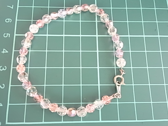 キラキラと輝くピンクトーンとクリアトーンの2トーン きらめきがとても綺麗な印象 輝くガラス調ビーズストーン 華奢 ブレスレット△ 收藏