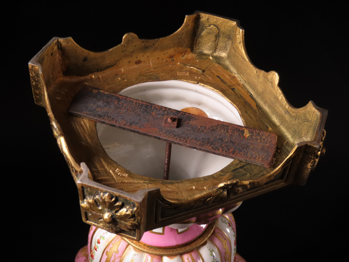 【ONES】19世紀 SEVRES セーブル パリ窯 ルイ15世様式 『ローズ・ポンパドール』 総手描 金彩蓋付飾壷 ブロンズ台座 高53.5cm 西洋美術 收藏