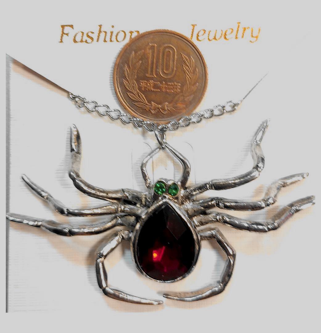 中央の胴体に大きな赤い石、頭に小さな緑の石(目)が配置され、独特のデザインをしています。蜘蛛は、多くの文化において多様な意味合いを持つ強力なシンボルです。
