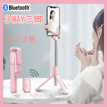 スマホ セルフィ 三脚 セルカ棒 リモコン Bluetooth ピンク色 收藏