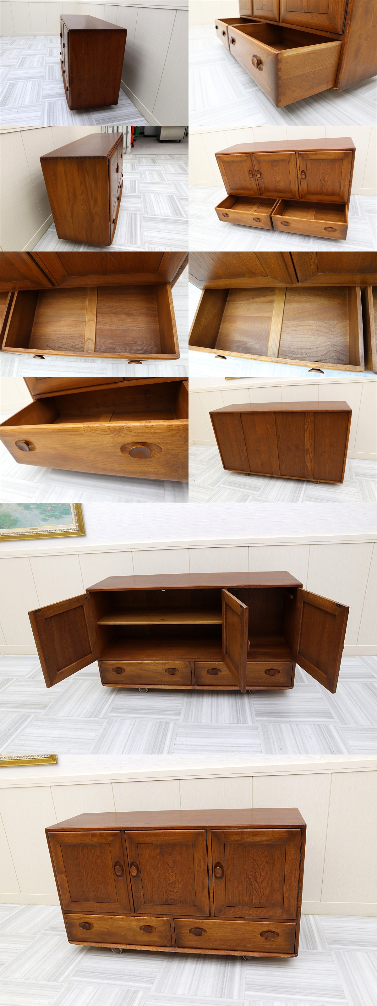 希少!英国 ERCOL アーコール ヴィンテージ 無垢 サイドボード リビング キッチンボード イギリス キャスター付 アンティーク家具 收藏