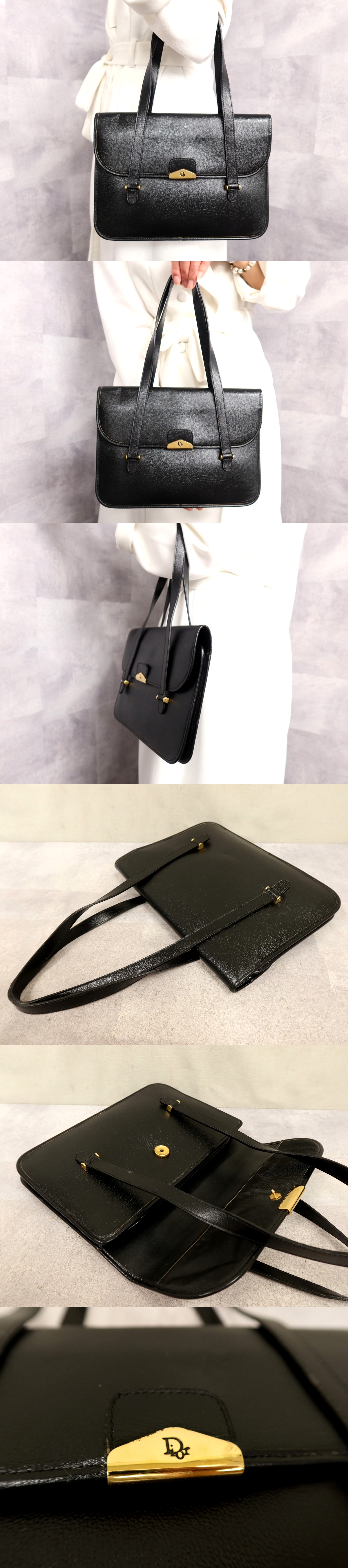●美品●Christian Dior クリスチャン・ディオール●ロゴ金具●カーフ レザー 本革●ハンド バッグ●黒●ゴールド金具●腕掛け●Js62199 收藏