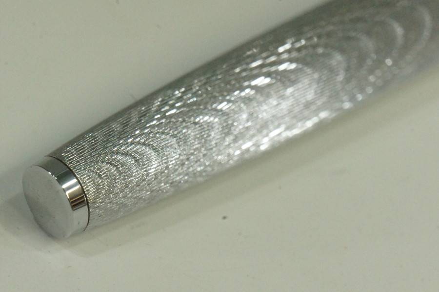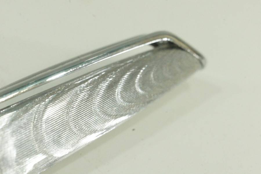 ボディは銀メッキだと思われますが、ストライプに曲線を重ね合わせて、おしゃれなデザインに仕上がっています。