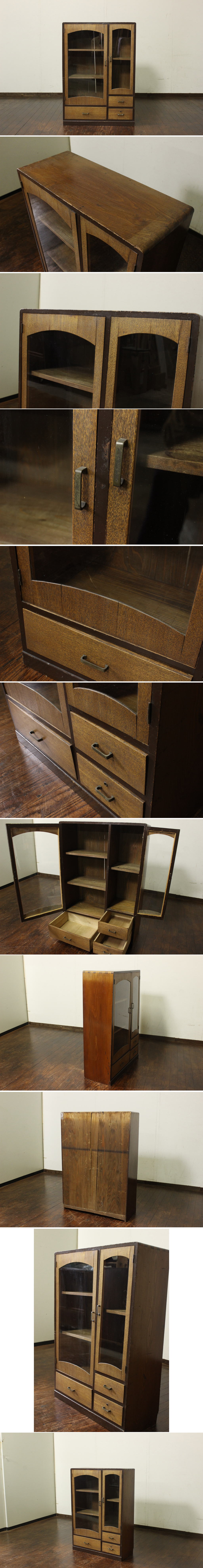 昭和レトロ!木製収納棚・引出し付き 食器棚/本棚/飾り棚/古家具/什器/ガラスケース/収納/古民家 收藏