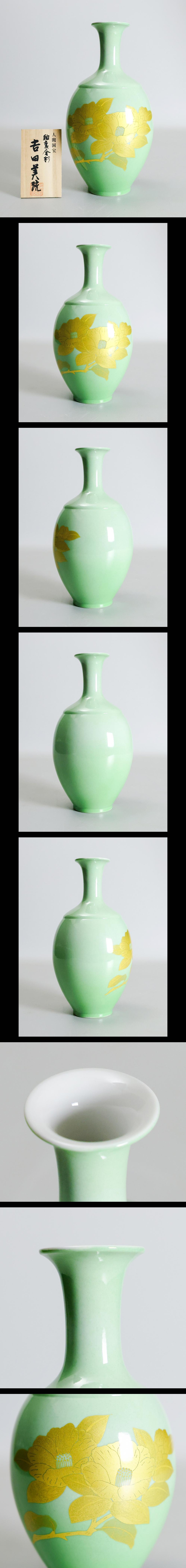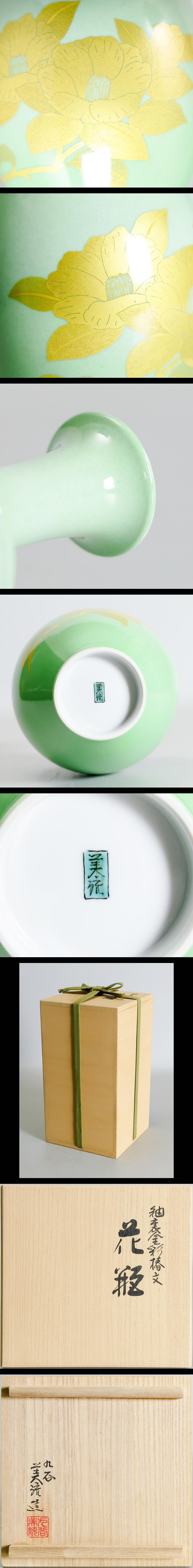 【真作】【WISH】吉田美統「釉裏金彩椿紋 花瓶」九谷焼 共箱 作板付 高さ25㎝◆金彩名品 〇人間国宝 釉裏金彩巨匠 旭日小綬章 #25116040 收藏