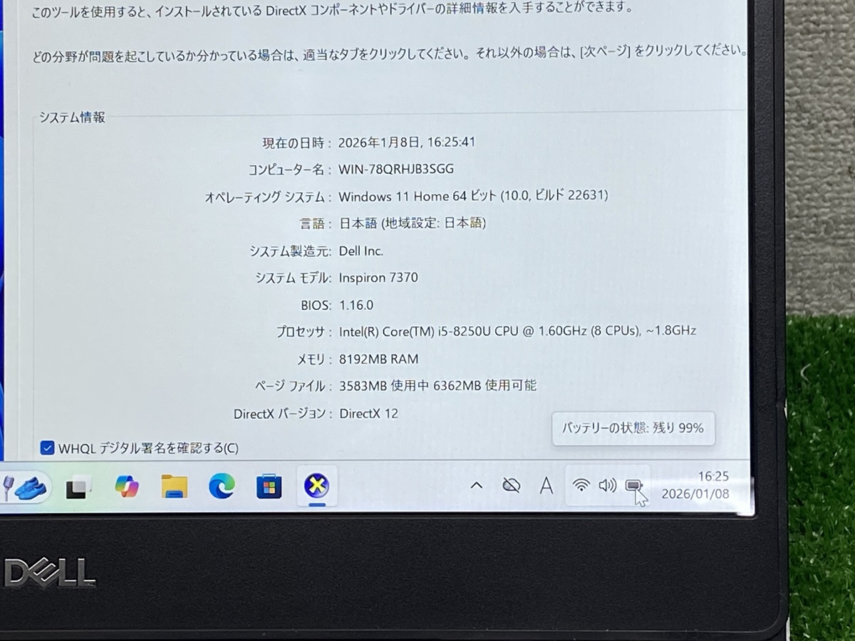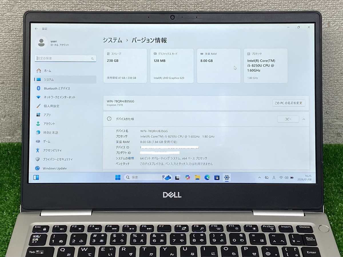 DELL INSPIRON 7370 ノートPC Core i5 第8世代 i5-8250U メモリ8GB SSD256GB WEBカメラ デール ノートパソコン 13.3 FullHD PC