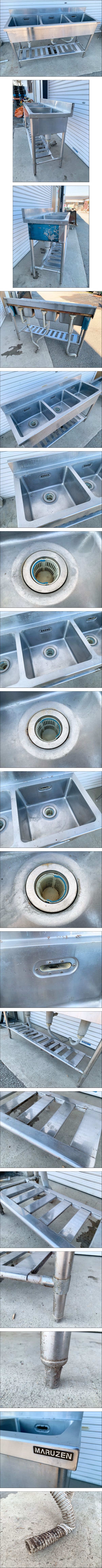 中古 MARUZEN マルゼン ステンレスシンク 三槽 3槽 幅1300×奥行450mm 流し台 手洗い場 厨房機器 店舗用品 飲食店 業務用 0113や3 M外 家D 收藏