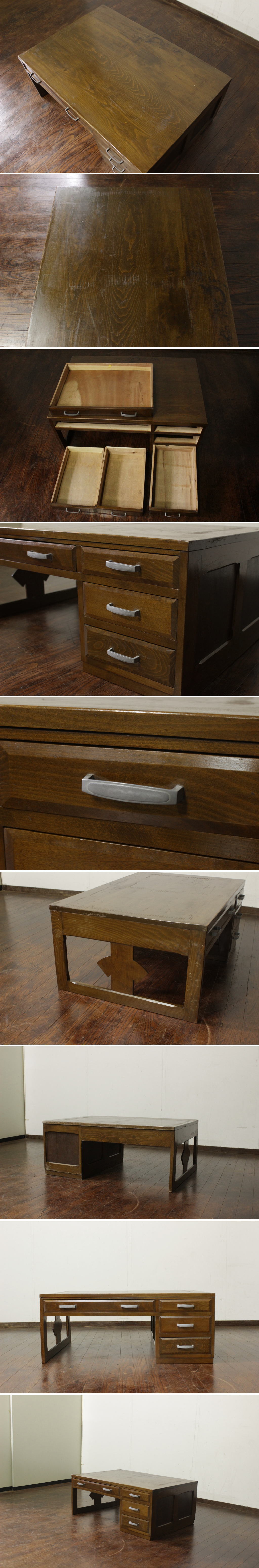 新入荷!【昭和レトロ】古い片袖文机 四段引き出し 枯れた味わい 作業台 ワークデスク 古道具 時代家具 書斎机 店舗什器 アンティーク 收藏