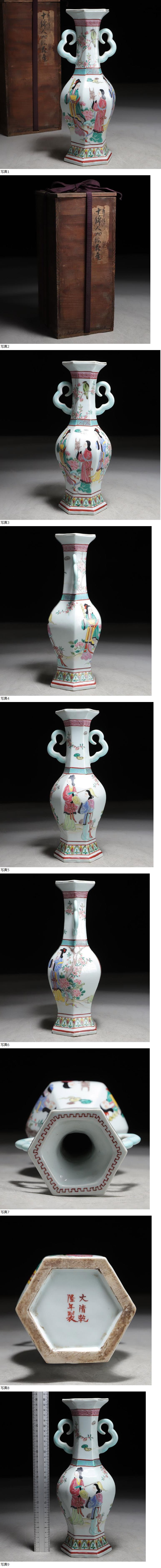 | 中国美術 景德鎮 花瓶 花器 花入 大清乾隆年製 六角 双耳 合箱 骨董品 |