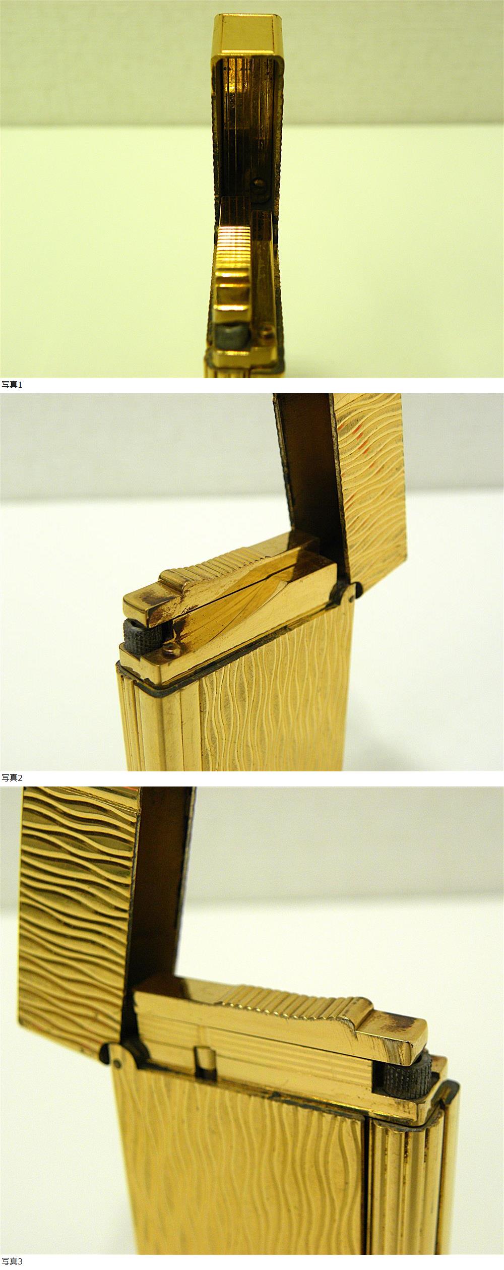 喫煙グッズ祭 デュポン ガスライター ギャッツビー サイドローラー ウェーブ ゴールドカラー ライター S.T.Dupont 中古品 箱なし 收藏