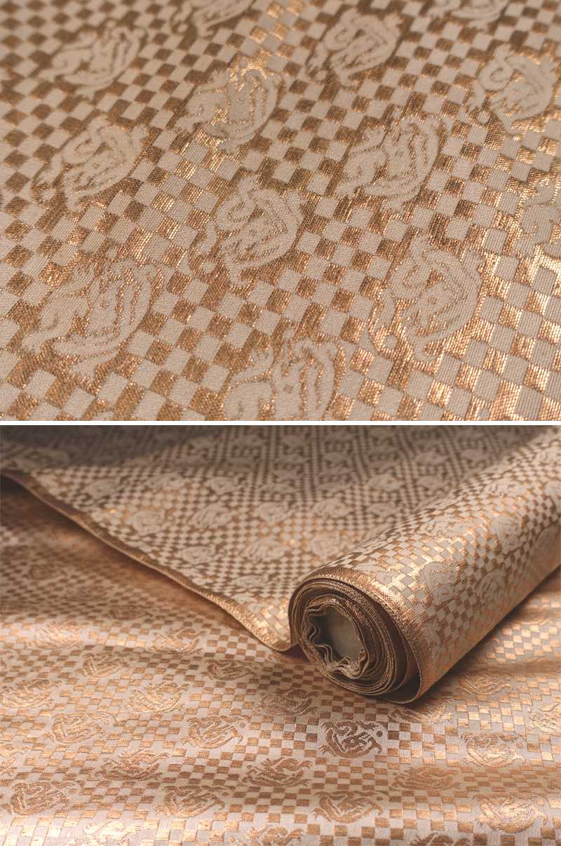 ∇花∇裂地賞玩 白地龍市松地紋金襴裂 絢爛な正絹織物 箔糸 465×71cm 表装裂 表具 仕覆 袈裟 2 收藏