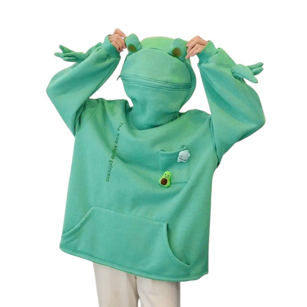 ☆ グリーン ☆ Mサイズ ☆ パーカー トップス カエル ジッパー付き パーカー レディース 長袖 おしゃれ フーディー プルオーバー 收藏