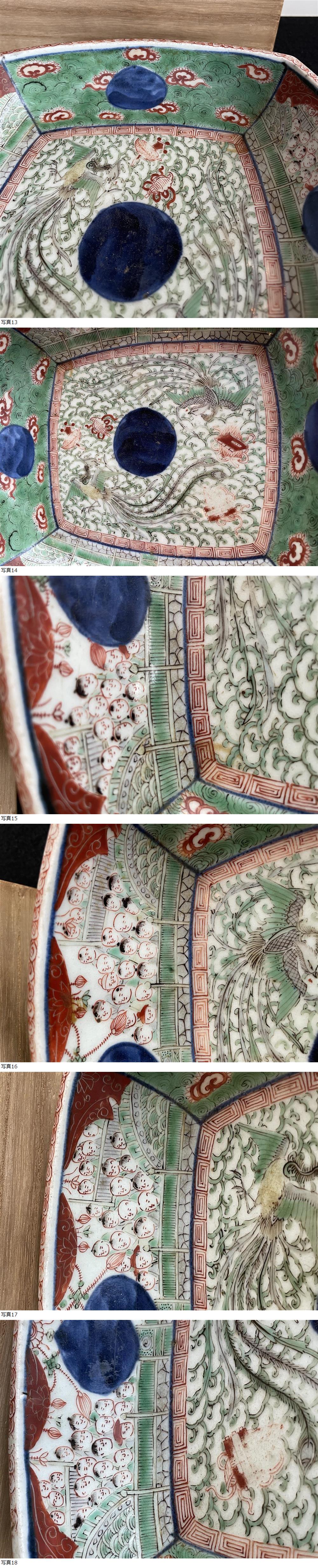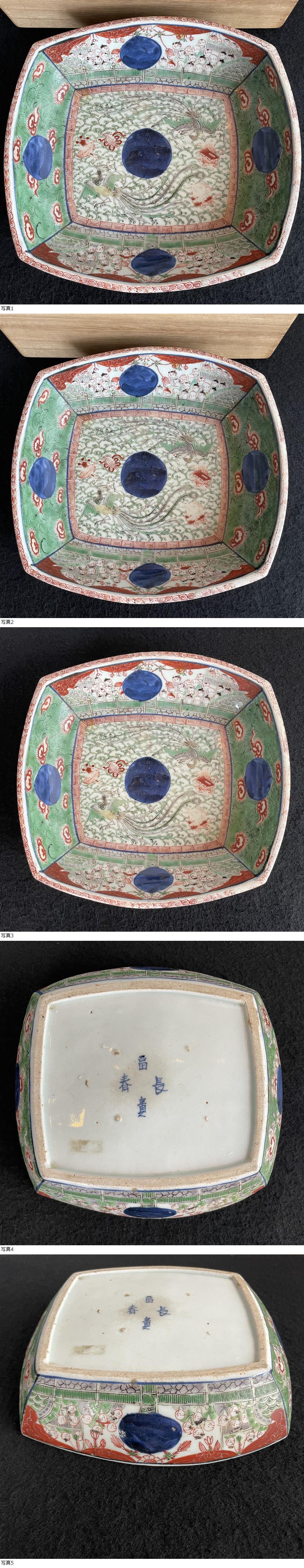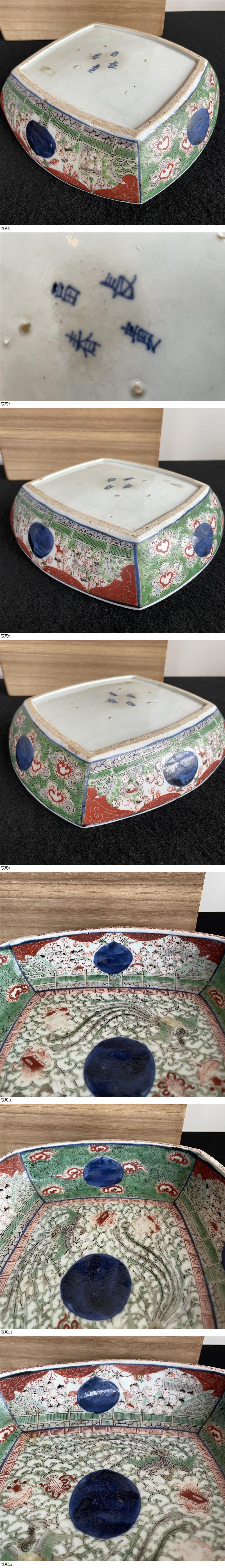 | 極上 明治 大聖寺伊万里 金襴手 四方鉢 鳳凰唐人図 富貴長春銘 完品 盛鉢 |