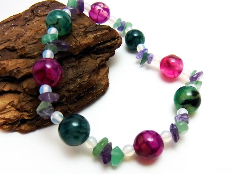 ウロコのような編み目模様のアゲート使用♪ 手作り メノウ&アメジスト・ヒスイ サザレミックス 天然石ブレスレット 数珠 18㎝ 收藏